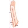 Skin-coloured penis sleeve with pronounced glans and veins, a tip that is curved upwards slightly and an extra hole for the testicles. The glans at the front are solid meaning that it extends the penis by 5 cm!